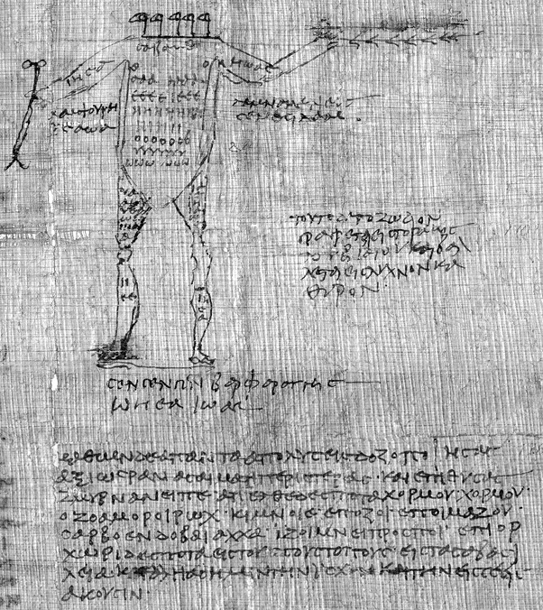 Илл. 16. Великий Безглавый: могущественный демон из магического папируса. Люди сведущие надеялись повелевать такими демонами посредством магических книг; за хранение такой книги полагалась смертная казнь. Berlin Pap. 5026, IV век. Новый музей, Берлин.
