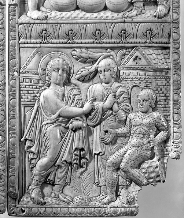 Илл. 17. Чудеса исцеления. Средний человек видел в Христе чудотворца. Даже язычники чтили его как могущественного волшебника. Фрагмент диптиха из слоновой кости (Диптих Эндрюса). Италия, 450–460 годы. Музей Виктории и Альберта, Лондон. © Victoria and Albert Museum, London.
