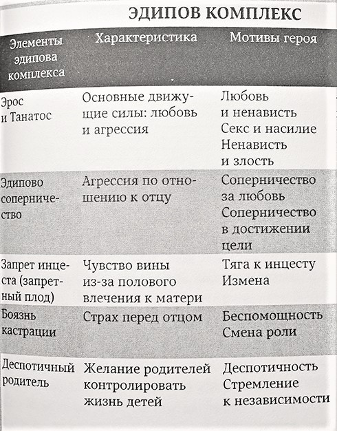 Для примера я приведу таблицу одного талантливого профессора психологии Уильяма Индика на основе Эдипова комплекса.
