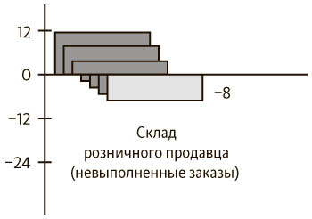 Наконец на 16-й неделе вам удается закрыть все заказы. Однако на следующей вы получаете заказ всего на 19 оптовых партий. А на 18-й неделе у вас вообще ничего не заказали. В некоторых формах цифры заказа просто зачеркнуты.