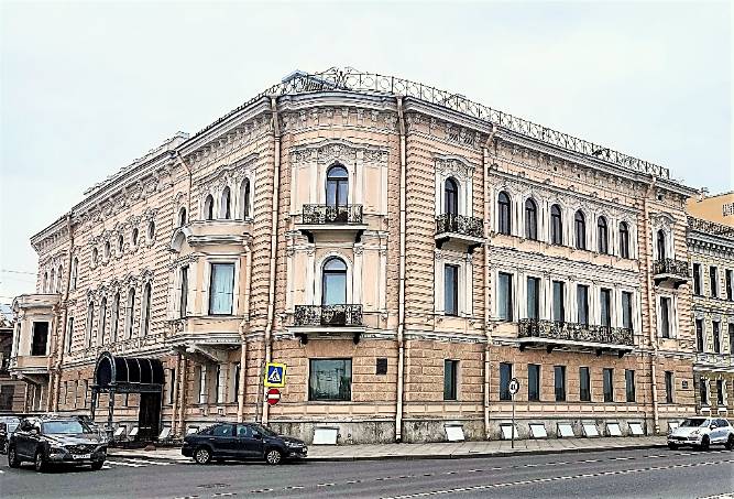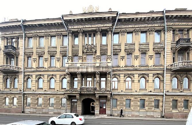 С 1885 года домом, давно использовавшимся в качестве доходного, владели представители графского рода Орловых-Давыдовых. Для новых хозяев архитектор Николай Всеволодович Дмитриев, создавший в Петербурге много заметных домов и целых ансамблей, кардинально перестроил здание как снаружи, так и внутри, в стиле пышной эклектики. Фасад украшают каннелированные трехчетвертные колонны и пилястры, кариатиды и многочисленный лепной декор. В уровне третьего этажа виден вензель «ОД», за которым как бы присматривают два мальчугана-путти, а над карнизом возвышается скульптурная композиция – грифоны держат геральдический щит с графским гербом Орловых-Давыдовых.