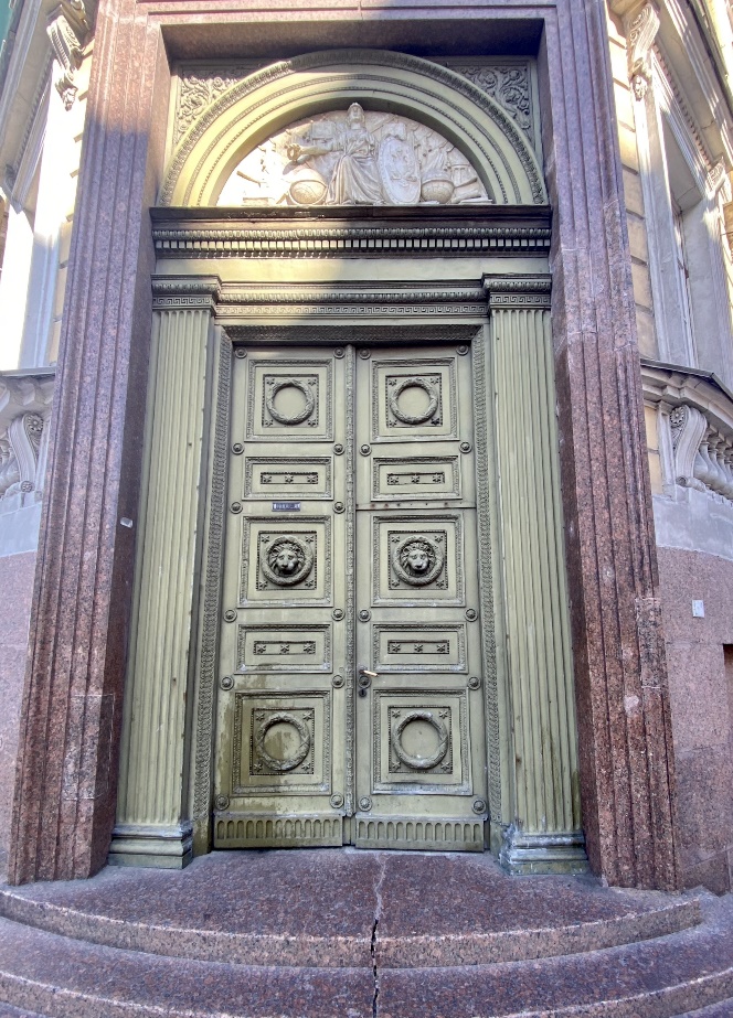 Пересечем Адмиралтейский проспект и, проходя мимо главного входа в бывший «Главленинградстрой», обратим внимание на редкую фактуру облицовки портала – зеркальные плиты гнейса с гранатом, а затем перейдем на четную сторону Невского и остановимся напротив дома 3.