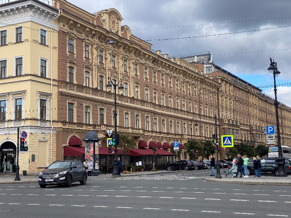 Этот маршрут мы начнём от Европейской гостиницы, выходящей узким торцом на Невский под номером 36.
