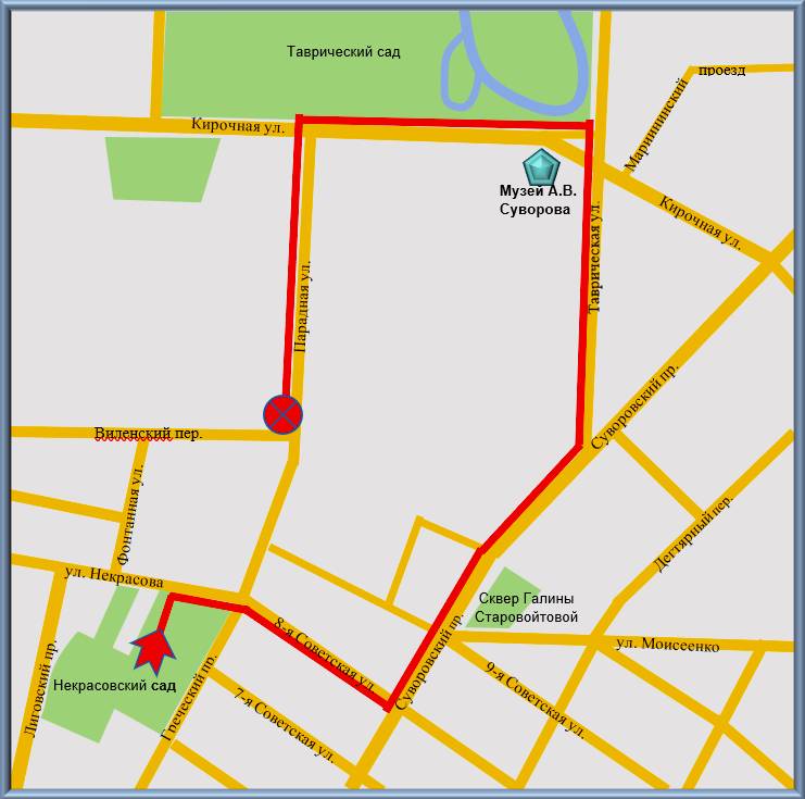 Неподалёку от Суворовского проспекта под острым углом отходит Таврическая улица, куда мы и направимся, продолжая нашу прогулку.