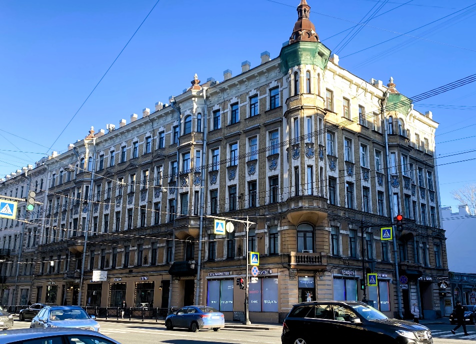 Завершает нашу прогулку дом 46 (Восстания, 46 / Кирочная, 19), который был построен в 1915 году по проекту гражданского инженера Владимира Фёдоровича Иванова. Угол здания, выходящего боковым фасадом на Кирочную улицу, отличает видимый издалека массивный купол и фигурные фронтоны сложного рисунка.