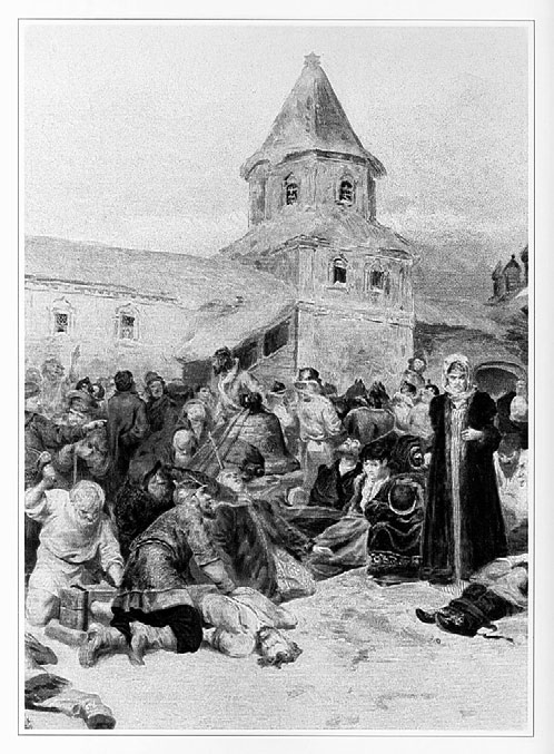 В первый год после подчинения Новгорода великий князь Иван не налагал своей опалы на новгородцев» и не принимал крутых мер против них. Когда же в Новгороде попробовали восстать и вернуться к старине, – всего через год после сдачи великому князю, – тогда Иван начал с новгородцами крутую расправу. Владыка новгородский Феофил был взят и отправлен в Москву, а взамен его был прислан в Новгород архиепископ Сергий. Много новгородских бояр было казнено, еще больше было переселено на восток, в московские земли. Исподволь все лучшие люди новгородские были выведены из Новгорода, а земли их взяты на государя и розданы московским служилым людям, которых великий князь в большом числе поселил в новгородских пятинах. Таким образом исчезла совсем новгородская знать, а с ней исчезла и память о новгородской вольности. Меньшие люди новгородские, смерды и половники, были избавлены от боярского гнета; из них были образованы крестьянские податные общины на московский образец. В общем, их положение улучшилось, и они не имели побуждения жалеть о новгородской старине. С уничтожением новгородской знати пала и новгородская торговля с Западом, тем более что Иван III выселил из Новгорода немецких купцов. Так была уничтожена самостоятельность Великого Новгорода. Псков пока сохранил свое самоуправление, ни в чем не выходя из воли великого князя.