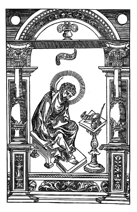 Апостол Лука. Фронтиспис первопечатного Апостола работы П. Мстиславца. 1564 г.