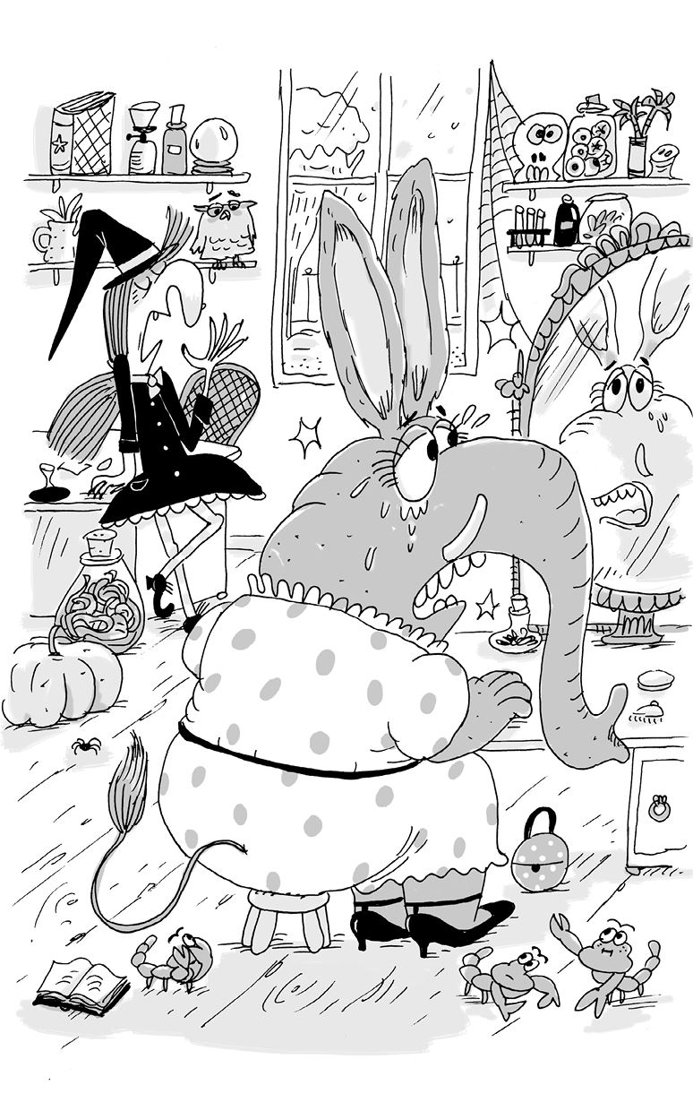 И бац – мадам Слониху окутало облако дыма, а когда оно рассеялось, на её голове обнаружились… мышиные ушки. Посмотрев на себя в зеркало, слониха разрыдалась: