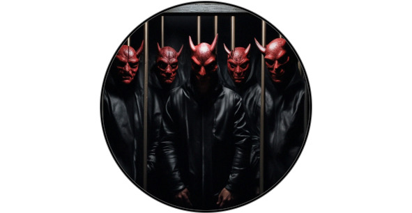 В центр вышли четыре бойца. Двое Изобретателей в белых майках с принтом в виде человеческого мозга нервно переминались и жались друг к другу. На Демонах были надеты черные кожаные куртки и страшные красные маски с рогами. Они одновременно стянули маски. Половина лица была черная, веки разукрашены красным, создавая эффект светящихся алых кровавых глаз.