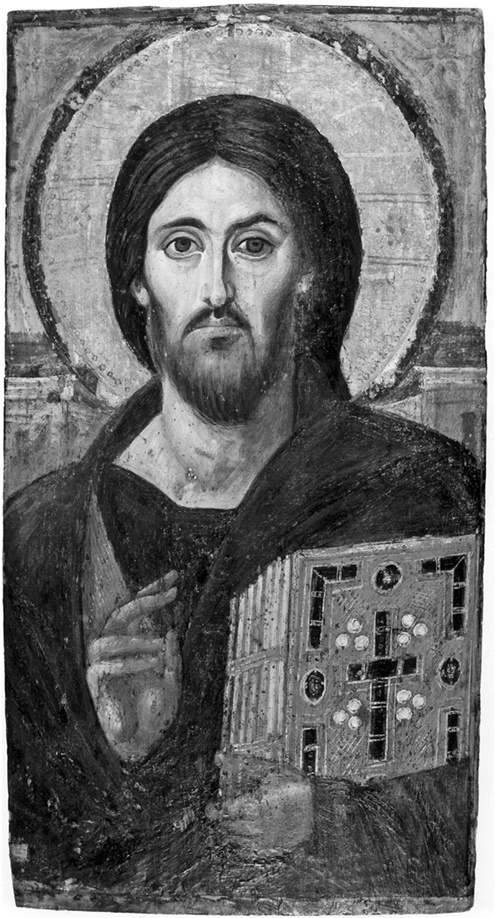Икона призывает глядящего на нее человека к покаянию и обновлению, к обращению, возвращению к Богу. Она призывает зрителя к святости, к тому, чтобы он стал живой иконой для других. С моей точки зрения, уникальной для понимания того, как протекает этот процесс освящения – его динамизма и/и, – является синайская икона Христа Пантократора (VI век). Эта икона была написана вскоре после того, как в постановлении Халкидонского собора (451 год) появилось дефинитивное определение вочеловечения: Христос является и человеком, и Богом, конечным и бесконечным, «познаваемым в двух природах неслиянно». Лик Христа смотрит с нее на зрителя, одновременно даруя и требуя. Пожалуйста, уделите время и внимательно рассмотрите эту икону.