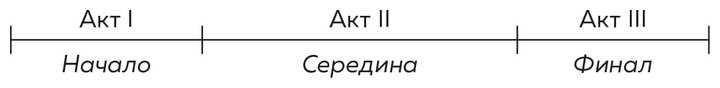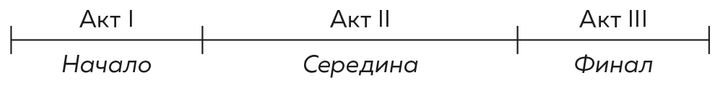 Хочу добавить еще кое-что, прежде чем мы перейдем на следующий уровень детализации. Насколько мне известно, эта идея впервые появилась в книге Сида Филда «Киносценарий: основы написания»[18], вышедшей из печати в 1979 году. Филд констатировал, что у сценария есть начало, середина и конец, которые он назвал тремя актами, и отметил, что Акт I (начало) – это первая четверть истории; Акт II (середина) – это две ее четверти; и Акт III (конец) – это последняя четверть.