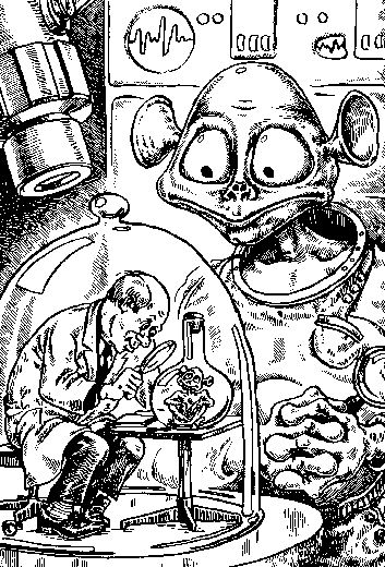 А что произойдет, если уровень эволюционного развития внеземной жизни будет резко отличаться от нашего? Ответ дает профессор астрономии из Манчестера З. Копал: “Столкнувшись с внеземными существами более низкого уровня, мы посадим их в пробирку. А если бы с нами встретились внеземные существа более высокого уровня, то они посадили бы в пробирку нас. Мы бы даже не заметили…”