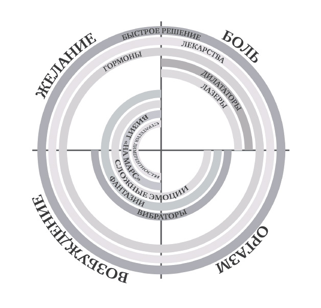 Однако, по замечанию Бат Шевы, главная трудность при работе с сексуальностью состоит в том, что пациентки обычно сталкиваются не с одной проблемой, а с целым набором, в составе которого могут быть как психологические, так и физиологические «компоненты». Вот поэтому при решении интимных проблем могут понадобиться и гинеколог, и эндокринолог, и психотерапевт.