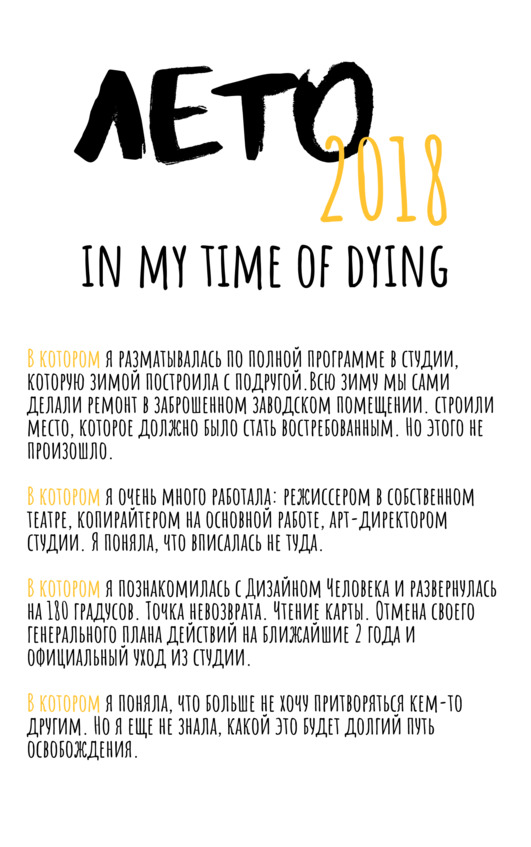 Быть собой – это в сто тысяч раз проще и интереснее, чем быть не собой. Особенную ценность это имеет, когда не собой ты притворялся 28 лет подряд по собственной же инициативе, всегда об этом зная. Это был мой виртуозный истинно манифесторский ход. Серьёзная игра, которую я теперь закончила по своей воле. Так же, как когда-то начала.