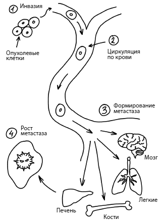 Когда клетки распространяются на отдаленные структуры организма, такой процесс называется метастазированием. Метастазирование имеет несколько основных этапов.