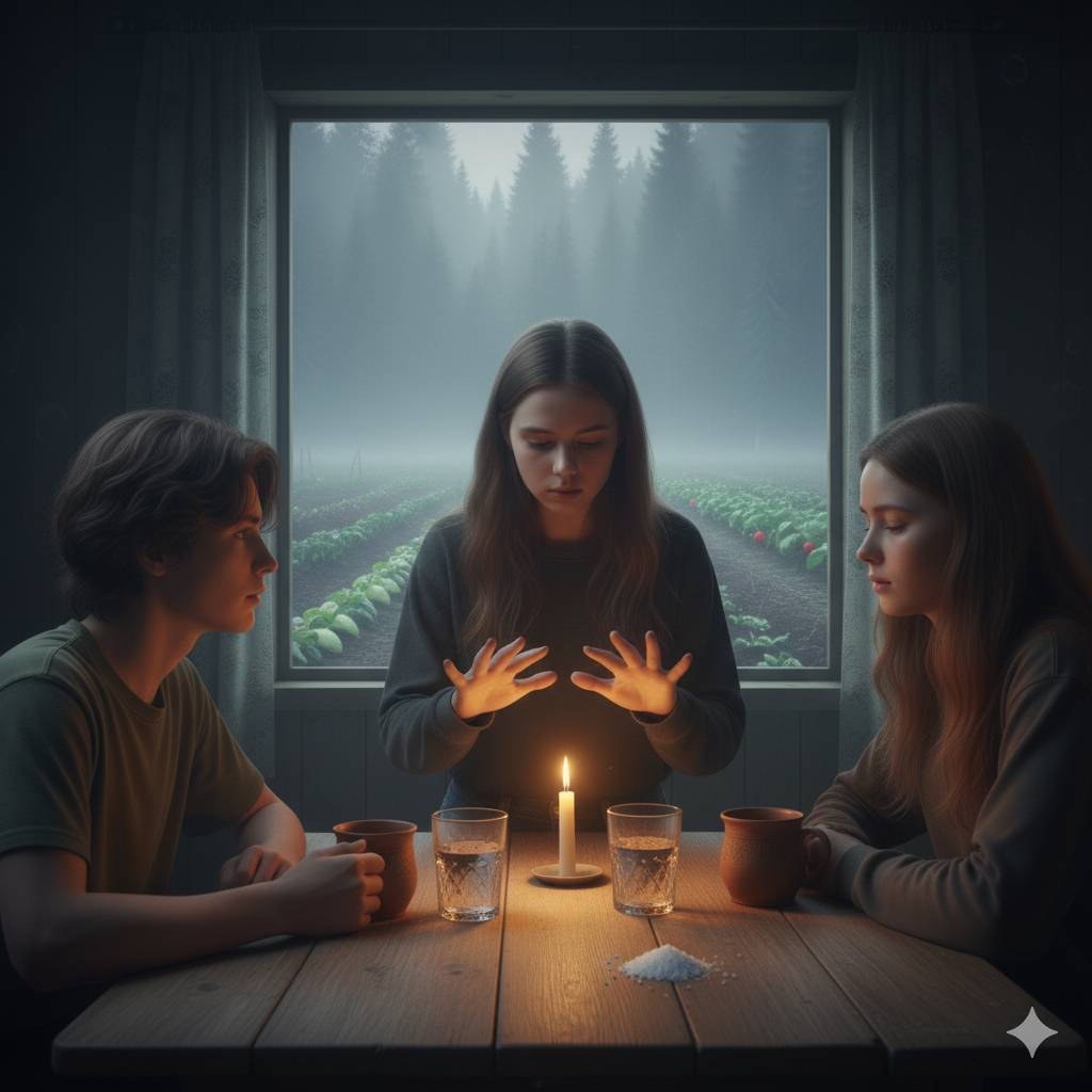Соня, заметив, как Мила нашептывает слова над стаканом, подошла и повторила за ней. Илья скептически приподнял бровь, но взял у бабушки кружку и сделал то же. Никто не смеялся.
