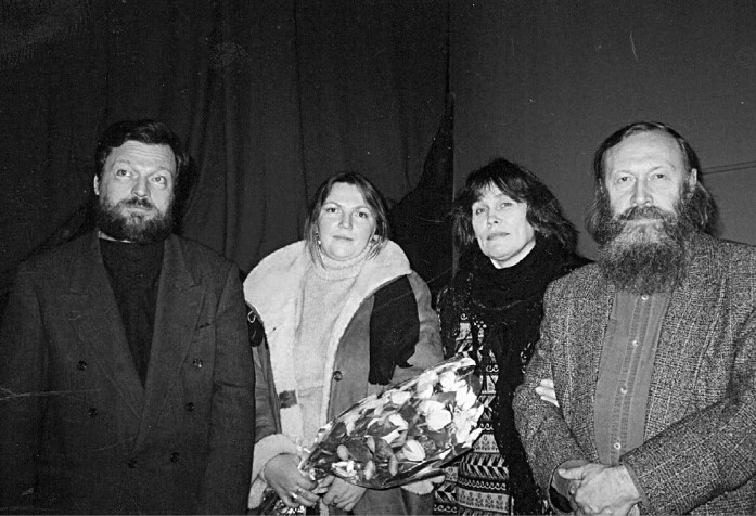Е. Санин, Е. Смольянинова, Л. Кудряшова, В. Филимонов на представлении фильма «Пастырь добрый» в кинотеатре «Свет». Санкт-Петербург. 2000 год