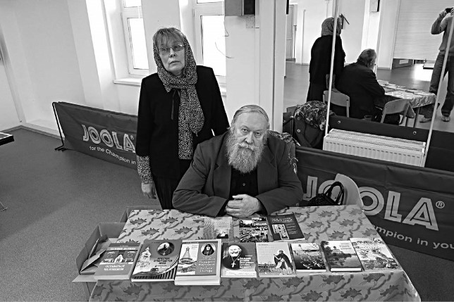 В.П. Филимонов и Л.П. Кудряшова с авторскими книгами. Лекция о святых в Колпино. 2015 год