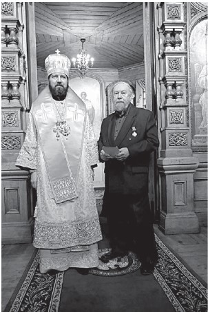 Епископ Гатчинский и Лужский Митрофан с В.П. Филимоновым. Награждение