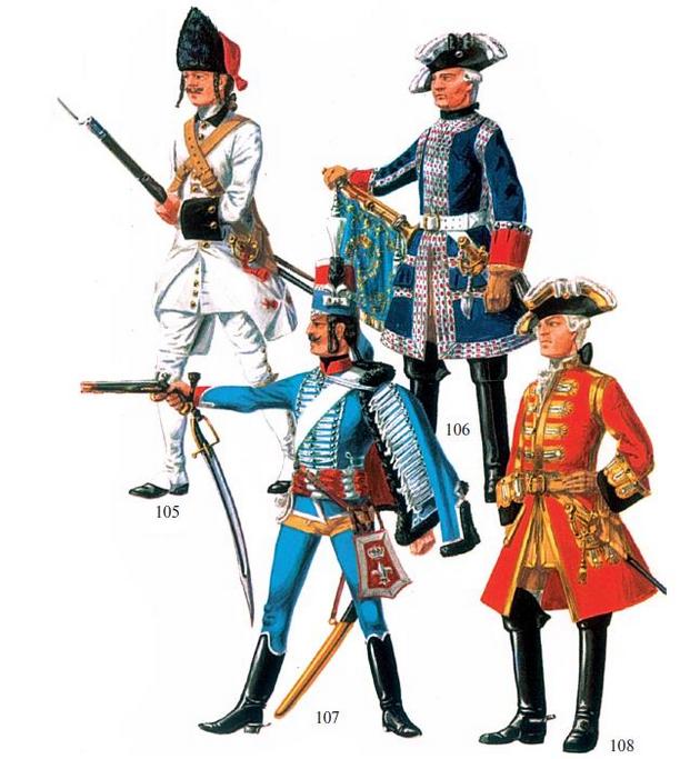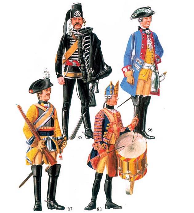 После Семилетней войны гусары были облачены в зеленые с красным брюки, но полковые отличия остались фактически неизменными.
