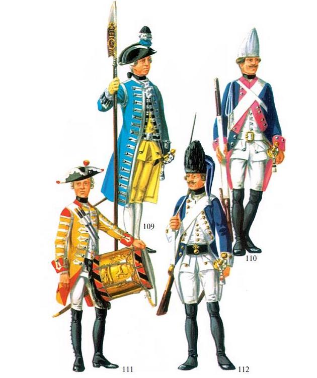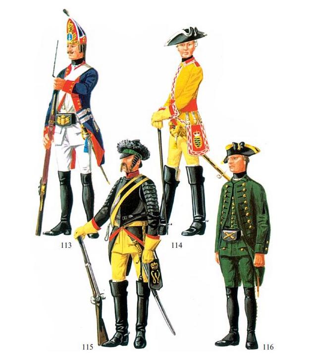 Первоначально вюртембергская пехота была одета в белое. В 1745 году были введены желтые кафтаны и красные камзолы. В 1752 году кафтан стал темно-синим в прусском стиле.