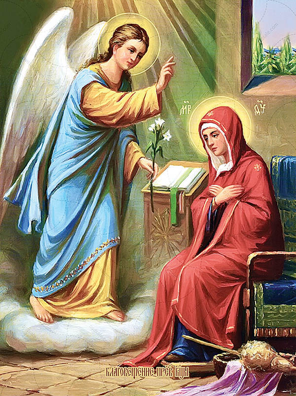 Небесная радость сияла на светлом лице его; держа в руках райскую ветвь, с видом глубокого почтения он приветствовал Деву: «Радуйся, Благодатная, Господь с Тобою! Благословенна Ты в женах».