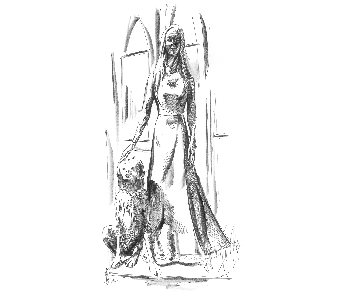 Illustration courtesy of Richard Sykes. This illustration depicts the tomb of Liliana Crociati de Szaszak in La Recoleta Cemetery, Buenos Aires, Argentina, which is known for its unusual neo-gothic design. Liliana was twenty-six years old when she was killed by an avalanche, and after his death several years later, her beloved dog, Sabú was added to her memorial. The text under the dog’s statue reads ‘Sabú, faithful friend of Liliana’.
