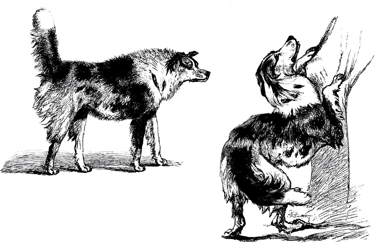 The Expression of the Emotions in Man and Animals by Charles Darwin was published in 1872. Darwin’s book is among the most enduring contributions to nineteenth-century psychology and a testament to his fascination with the dog. The left illustration is captioned, ‘Half-bred Shepherd dog approaching another dog with hostile intentions’. The right, ‘The same caressing his master’. Both were drawn by A. May. (Science History Images/Alamy Stock Photo)