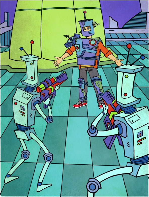 – Первое правило охотника на роботов гласит: «Видишь робота – стреляй, не видишь – не стреляй». Помню, однажды я вздумал прикончить робота не глядя, буквально стреляя в космическую пустоту.