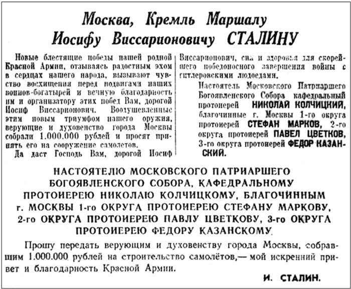 В годы Великой Отечественной войны верующие и духовенство храма собрали один миллион рублей на сооружение самолетов, так как принято считать, что пророк Божий Илия является покровителем авиации. Деньги эти были переданы лично И.В. Сталину, который в ответ направил благодарственную телеграмму.