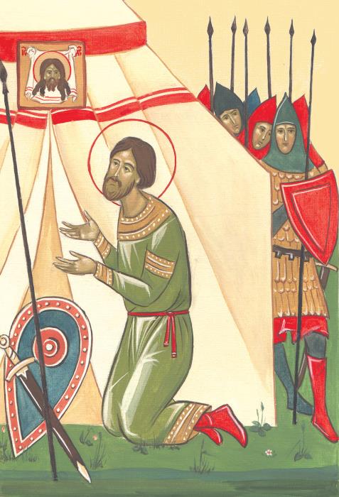 И стали воины расходиться от него. Остался Борис на берегу Альты, в походном шатре, с одним лишь отроками, младшими из дружины. Одного из них он послал к брату со словами мира.