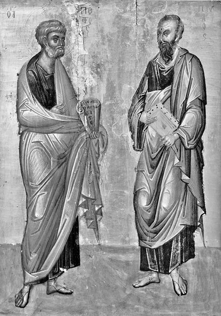 Апостолы Петр и Павел. Икона. Монастырь Св. Екатерины на Синае. XIV в.