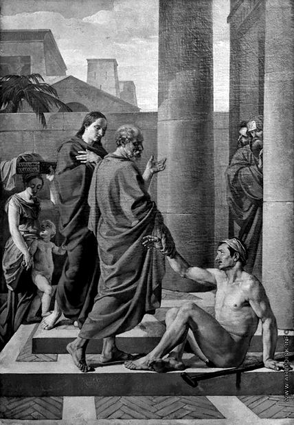 Апостолы Петр и Иоанн исцеляют хромого. В. К. Шебуев. Фрагмент картины. 1838 г.