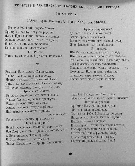 Платон, архиепископ. Программная речь на епархиальном съезде духовенства // Американский православный вестник, май 1914, № 10,197.