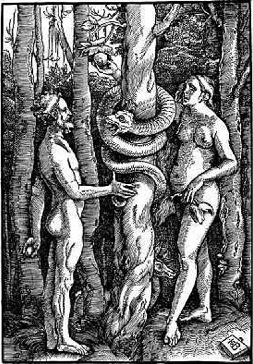 Соблазнительная диавольская речь змия подействовала на Еву. Она посмотрела на дерево и увидела, что дерево приятно для глаз, хорошо для пищи и дает знание; и захотелось ей узнать добро и зло. Она сорвала плоды с запрещенного дерева и ела; затем дала мужу своему, и он ел.