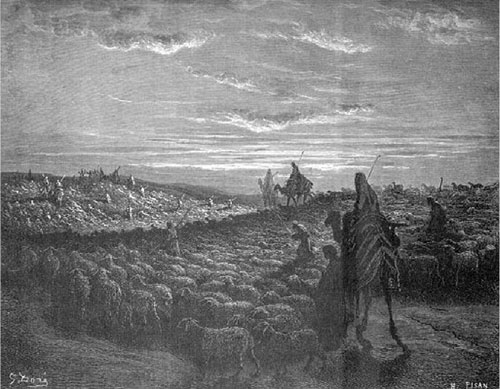 Когда стада Авраама и Лота так размножились, что им становилось вместе тесно и между их пастухами стали происходить непрестанные споры, тогда они решили дружелюбно разойтись.
