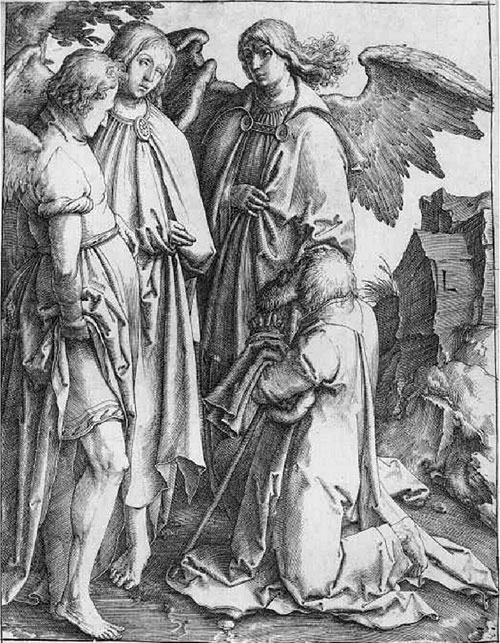 Однажды, в знойный день, Авраам сидел под тенью дуба, у входа своего шатра, и видит: стоят против него три странника. Авраам любил принимать странников. Он сразу же встал и побежал навстречу им, поклонился до земли и стал звать их к себе отдохнуть под деревом и подкрепиться пищею.