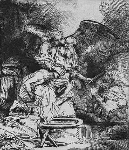 Когда они шли вдвоем на гору, Исаак спросил Авраама: «Отец мой! у нас есть огонь и дрова, а где же агнец (ягненок) для жертвоприношения?»