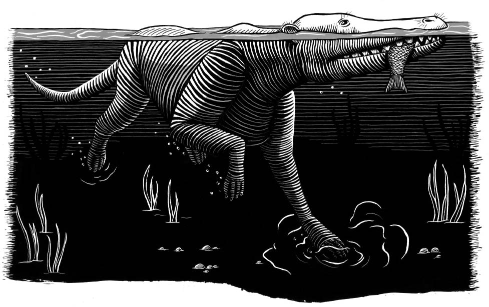 Fossils tell us the earliest whales were more obviously, visibly mammalian. The first whales had four legs, a nose at the tip of their snout, and maybe even fur (up for some debate among paleontologists, as fur doesn’t readily fossilize). They had sharp, bladelike teeth and lived in habitats that ranged from woodlands with streams to river deltas, occasionally feeding in the brackish waters of warm, shallow equatorial coasts. The oldest fossils of these land-dwelling, four-legged ur-whales come from rock sequences around about fifty million to forty million years old in the mountain ranges of Pakistan and India. At the time, the Indian subcontinent had not yet collided with Asia and sat in the middle of the forerunner to the Mediterranean Sea, called the Tethys sea, which split the Old World at the equator.