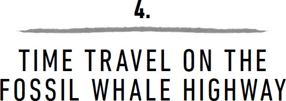 A good paleontologist can go far on scraps alone, and sometimes we’re lucky. There are places—or times, because paleontologists think in both space and time—where the fossil record yields parts of hundreds and even thousands of individuals. These fossil-rich areas are called bonebeds. My mental library comes in handy when I encounter one, helping me distinguish a scrap as the bone of a whale versus that of any other animal. At their densest, fossil whales in bonebeds get jumbled with scraps of other extinct marine mammals, seabirds, sea turtles, and sharks into layers only a few inches thick. At the other end of the spectrum, complete whale skeletons can be distributed over a broad area that can even reach square miles. The definition of a bonebed has mostly to do with the fact that skeletal parts are concentrated within a single layer of rock. What paleontologists and geologists want to know, once they’ve found a bonebed, is how much geologic time has compressed the evidence, which can represent as much as a million years or maybe just a day’s worth of a flood.