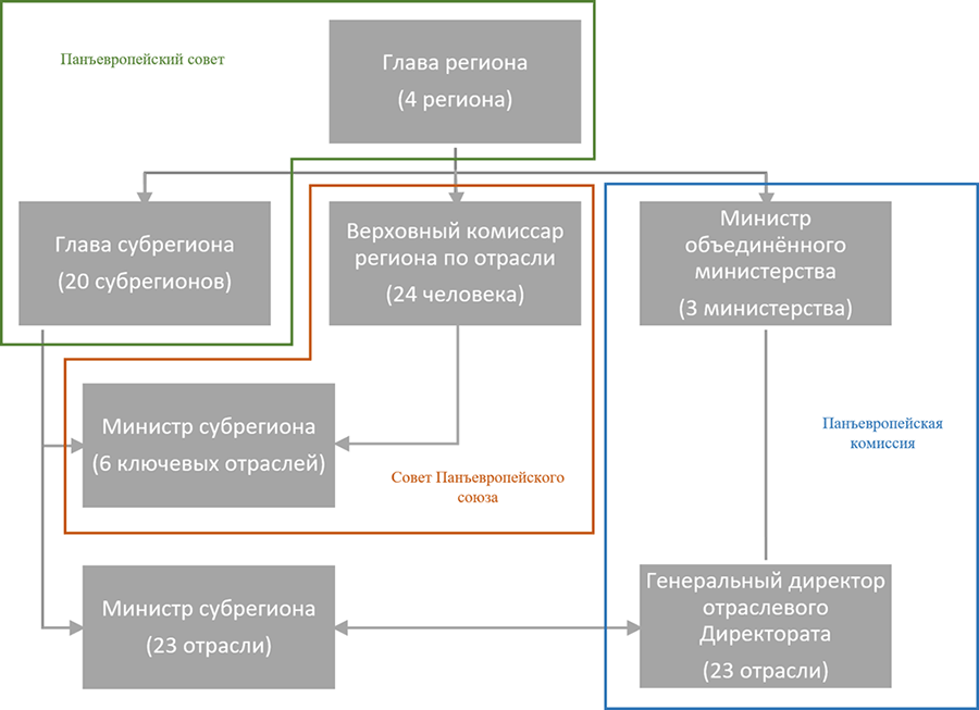 Схема институциональных органов исполнительной и законодательной власти Панъевропейского союза