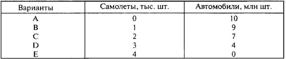 Таблица 2.1. Производственные возможности страны по производству автомобилей и самолетов в год