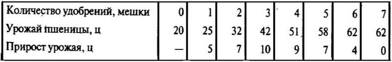 Допустим, что в фермерском хозяйстве выращивается пшеница. Рост применения химических удобрений (при неизменности остальных факторов) приводит к увеличению урожая. Рассмотрим это на примере (в расчете на 1 га):