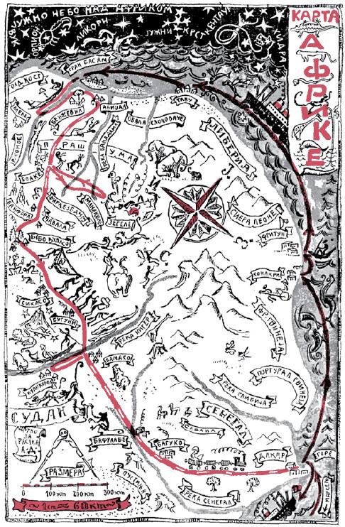 В своё путешествие во французскую Западную Африку (тогдашний Западный Судан) тридцатилетний Растко Пéтрович отправился в декабре 1928 года. К тому времени он уже известный в Королевстве Сербов, Хорватов и Словенцев писатель и поэт, автор двух модернистских романов (1921, 1927) и сборника стихов (1922), которого сегодня относят к зачинателям сербского сюрреализма. Участник Первой мировой, он вместе с частями действующей армии, вынужденной зимой 1914–1915 годов отступать из оккупированной Сербии, оказался на греческом острове Корфу, откуда перебрался в Ниццу, а затем в Париж, и там поступил учиться правовым дисциплинам как стипендиат союзного французского правительства. В городе, культурная жизнь которого в те годы расцветала самыми яркими авангардными новациями, он встречался с Андре Жидом, Жаном Кокто, Пабло Пикассо, Андре Сальмоном, Полем Элюаром и, конечно, с Андре Бретоном – и через десятилетие с небольшим он напишет газетный очерк о нём и о сюрреализме в белградской газете «Време». Вернувшись на родину, Петрович привёз с собой большую подборку дадаистских изданий. Первое время он сотрудничал с авангардным журналом «Зенит», затеянным Любомиром Мицичем в феврале 1921 года, – опубликовал в нём несколько стихотворений, а также статью о современном искусстве в Париже (в первых номерах журнала он даже был указан как его парижский представитель).
