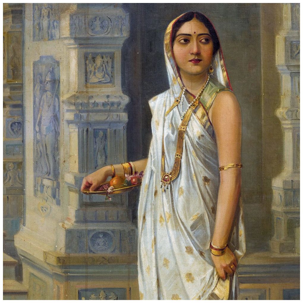 Через некоторое время одна из дверей потихоньку приоткрылась, и на веранду с пленительной застенчивостью вошла девушка. Она остановилась перед Онукулом-бабу, держа в руках коробочку с бетелем.
