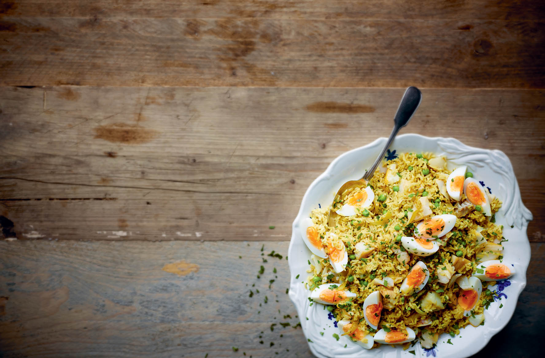 My friend Helen, who grew up in England with an Irish father and a mother from New Zealand, says that the taste of kedgeree will always bring her back, in an instant, to when she was little, sitting round the table with her family having brunch. It’s a great recipe for feeding a crowd and, of course, it’s good at any time of the day. This curried rice dish, made with delicious fresh or smoked fish, hard-boiled eggs and lots of intensely green parsley, is inspired by Helen’s mum’s recipe. Thanks, Beth!