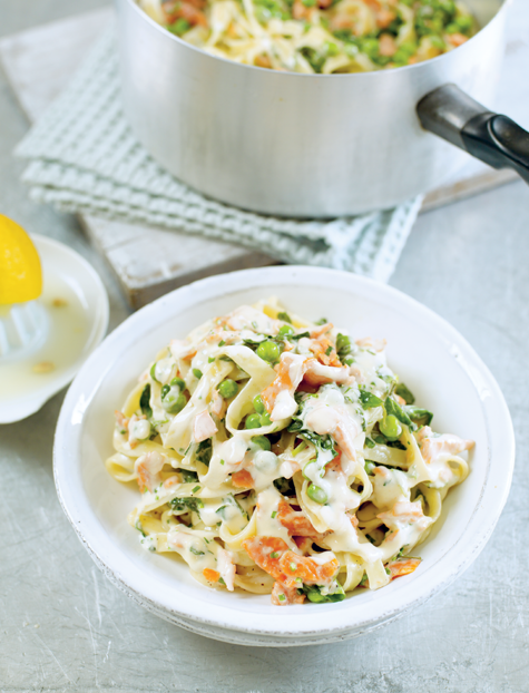 1 Fill a large saucepan with water, add 1 teaspoon of salt and bring to the boil. Add the tagliatelle and cook for 10–12 minutes (or follow the instructions on the packet), stirring occasionally, until just tender.