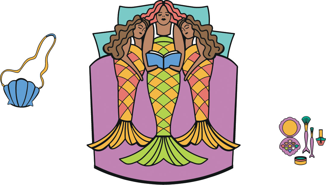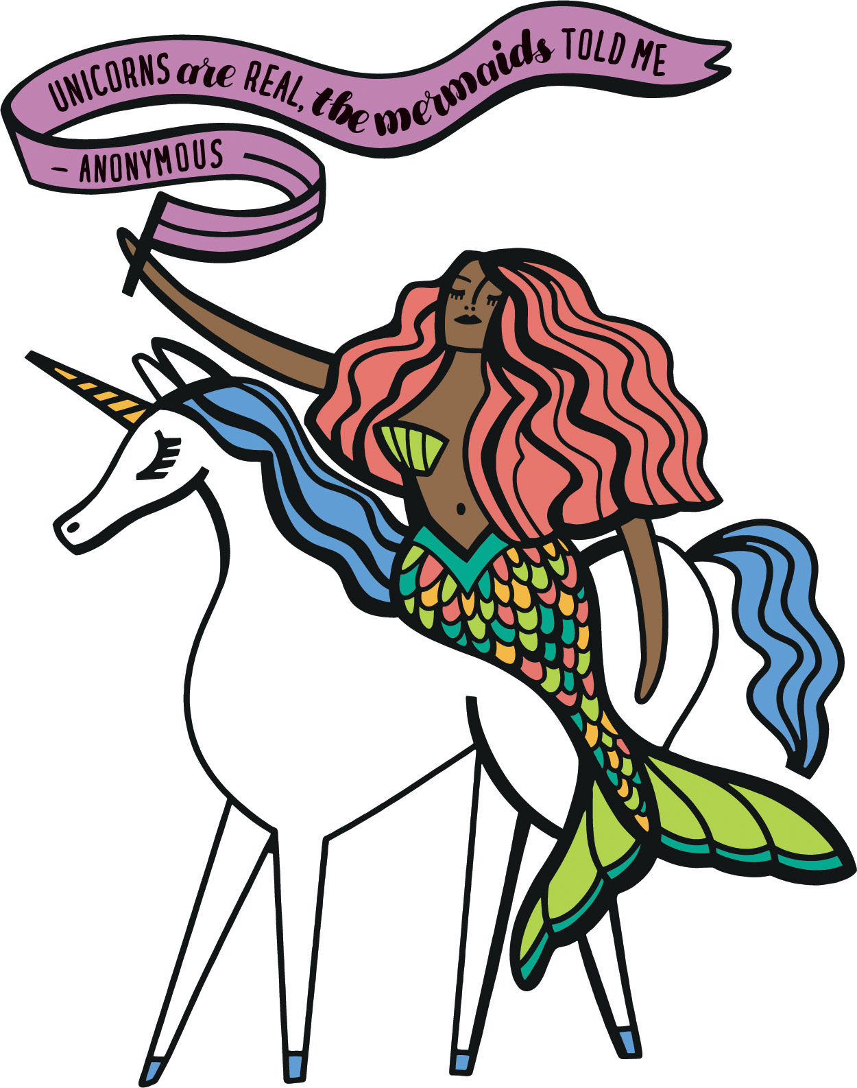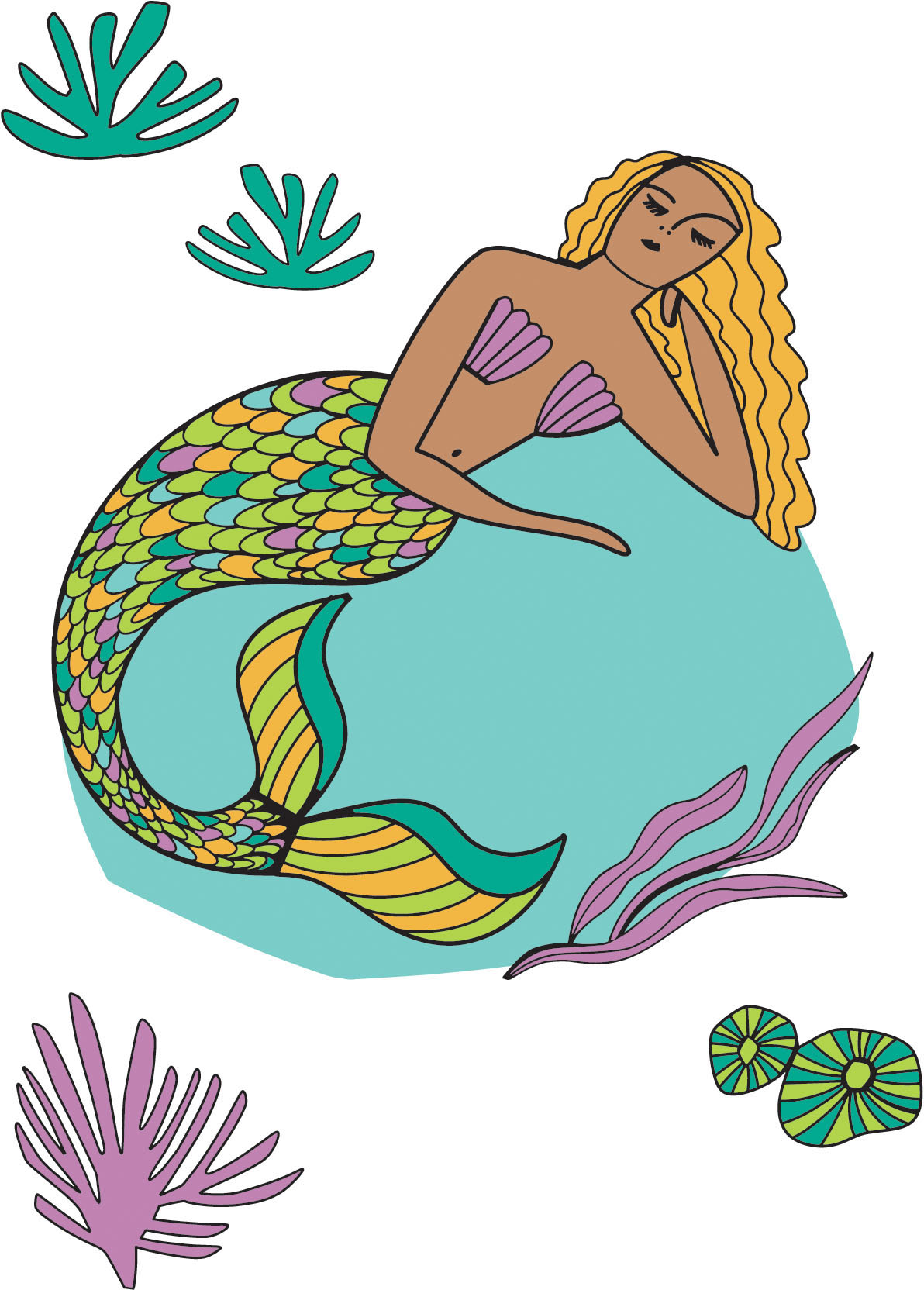 From the Middle English word mere – meaning lake or sea – mermaids are ‘maids of the sea’, the stuff of legends, but at the same time ever-present in our modern world. From TV series to music videos, from children’s illustrated books to feminist magazines, graffiti, stamps, tattoos, young adult lit, and manga comics, to inspirational postcards and cosy fish-tailed blankets, it seems that wherever you turn, our oceanic alter egos are there. Sprung from ancient fish gods, reborn from the tragedy of forbidden love, combined with the seductive power of the half-bird sirens who sang to Odysseus, and a warning against temptation in the Middle Ages, today mermaids exist as everything from birthday party entertainment to a reclaimed site of political and particularly feminist power.