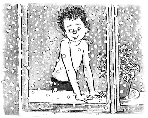 Мама повернула его голову к окну, и он увидел, что за стеклом медленно летят белые хлопья. Они кружатся, обгоняют друг друга, садятся на голые ветки большой липы.
