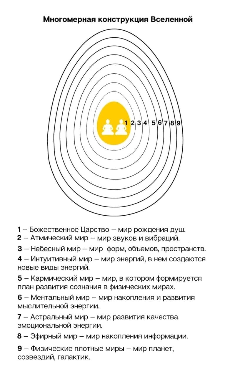 2.7.5. «Белком» в такой конструкции, выступают семь миров, которые расположены друг за другом. «Скорлупой» такого «яйца», являются все физические миры данной Вселенной. Первые семь миров – тонкие, невидимые для физических миров.